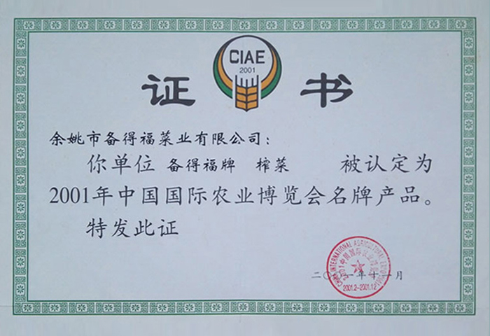 浙江備得福食品有限公司, 創(chuàng)建于1992年,是一家專業(yè)生產小包裝榨菜、泡菜等現代化農業(yè)企業(yè),公司位 于美麗富饒,處處充滿商機和希望的開發(fā)熱土——杭州灣畔。滬杭甬高速公路、329國道在公司的南大門橫貫而過, 東臨深海大港——北侖港,西臨蕭山國際機場,北靠舉世矚目的杭州灣跨…【更多】
